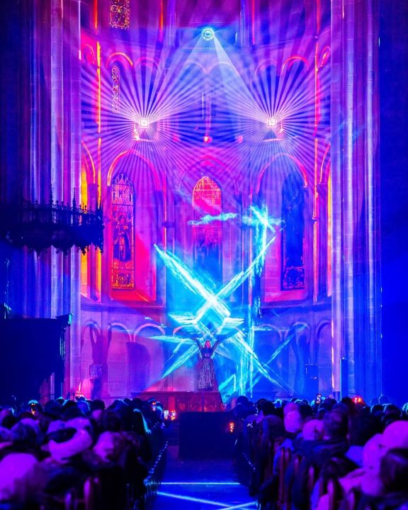Inside St. Pierre Cathedral in Geneva, Switzerland, six IVL fixtures were used for “Halo”, an immersive art installation and live performance presented as part of Geneva Lux, running until February 1st.