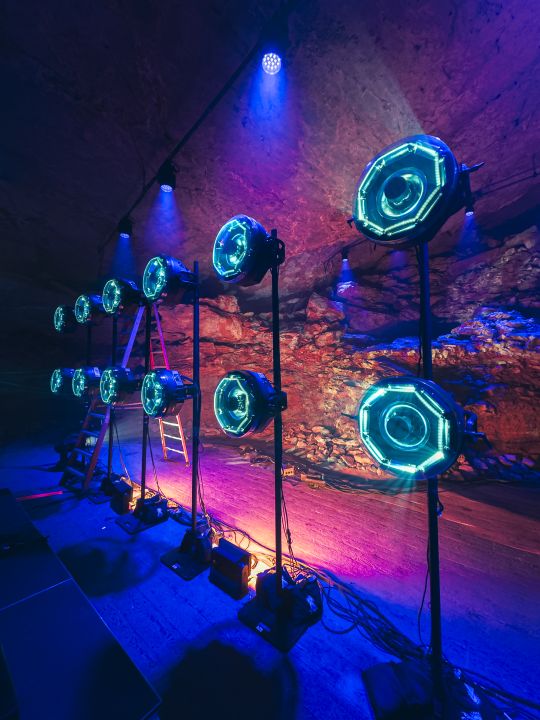 The underground venue’s low ceilings, natural haze, and immersive atmosphere created the perfect environment for a full IVL grid to reshape the space.